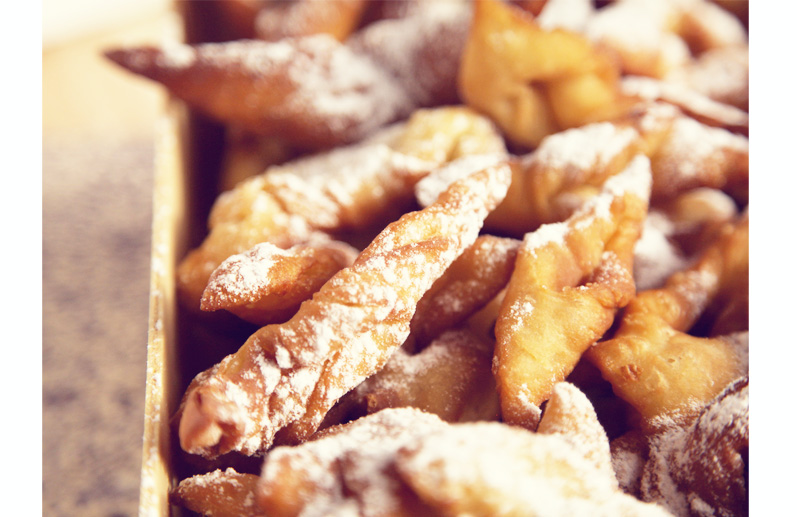– Egoutter les bugnes sur du papier absorbant.- Saupoudrer de sucre glace.